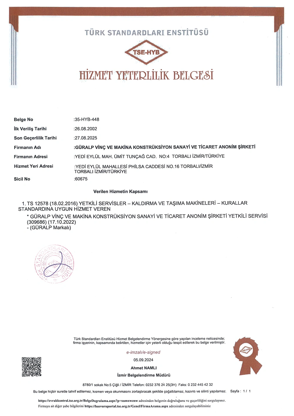 Kaynak dikişlerinin kalite kontrolü/tahribatsız muayenesi ISO 9712 standardı seviye-2 (görsel, manyetik, ultrasonik test) sertifikalı uzmanlar tarafından yapılmaktadır.