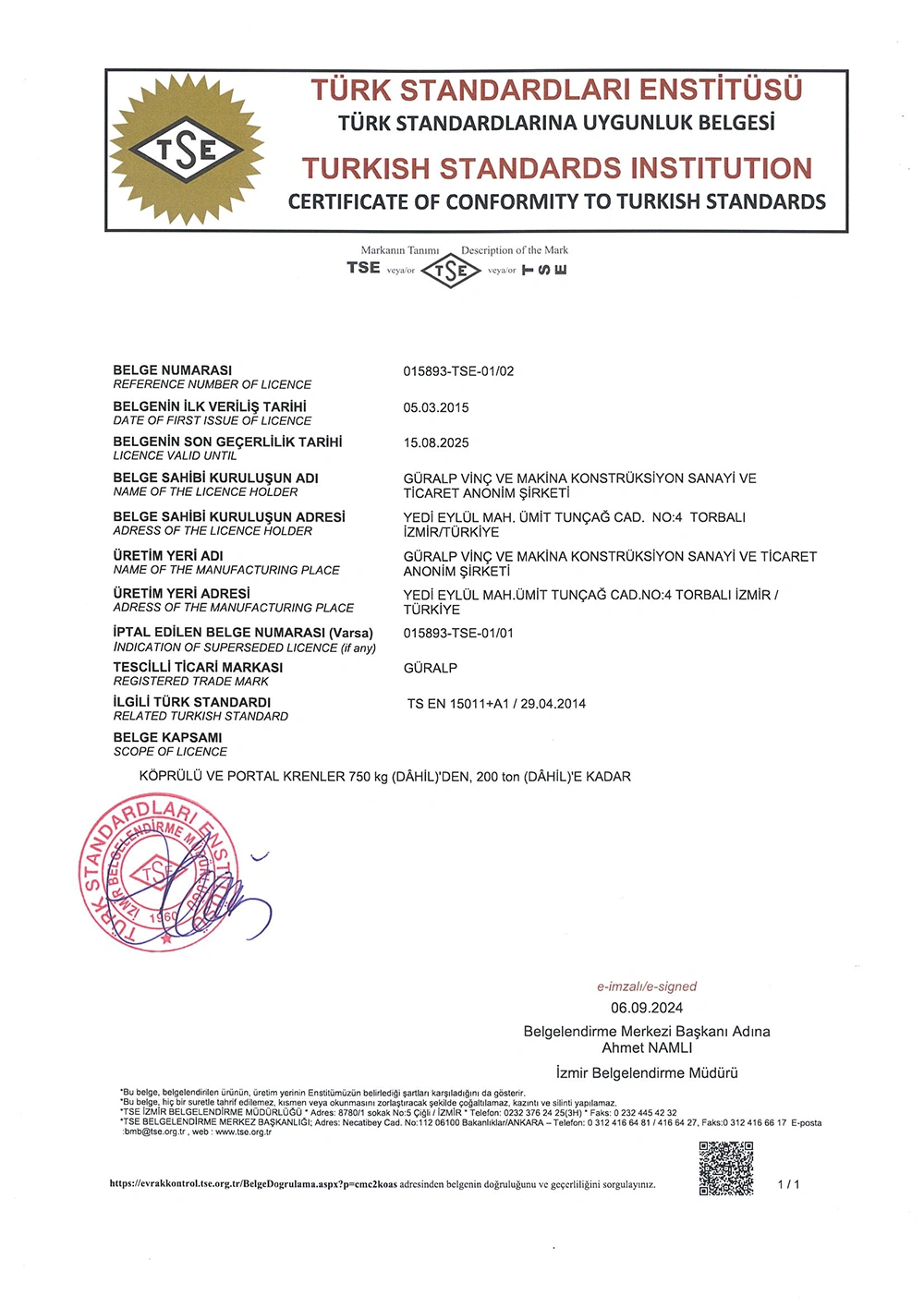 Şirketimiz uluslararası standartların gerekliliklerine uygun, yüksek kalitede üretim yapmaktadır. Güralp olarak sahip olduğumuz belgeler ; ISO 9001, EN 1090-1&2 (Exc.3), EN ISO 3834-2, TS EN 15011, TS 12578 HYB (Hizmet Yeterlilik Belgesi), EAC. Kalite belgelerimizin geçerliliği için her yıl TSE ve TÜV gibi kurumlar tarafından denetlenmekteyiz. Ayrıca FEM (Avrupa Malzeme Elleçleme Federasyonu) standartlarına göre üretim yapmakta olup, Türkiye FEM temsilcisi İSDER’e üyeyiz. Güralp, tasarımdan nihai ürün çıkışına kadar olan tüm süreçlerde sahip olduğu kalite sistemlerine ve 2006/42/EC “Makine Emniyet Direktifi”ne uygun, CE markalı makine ve ekipman üreticisidir.